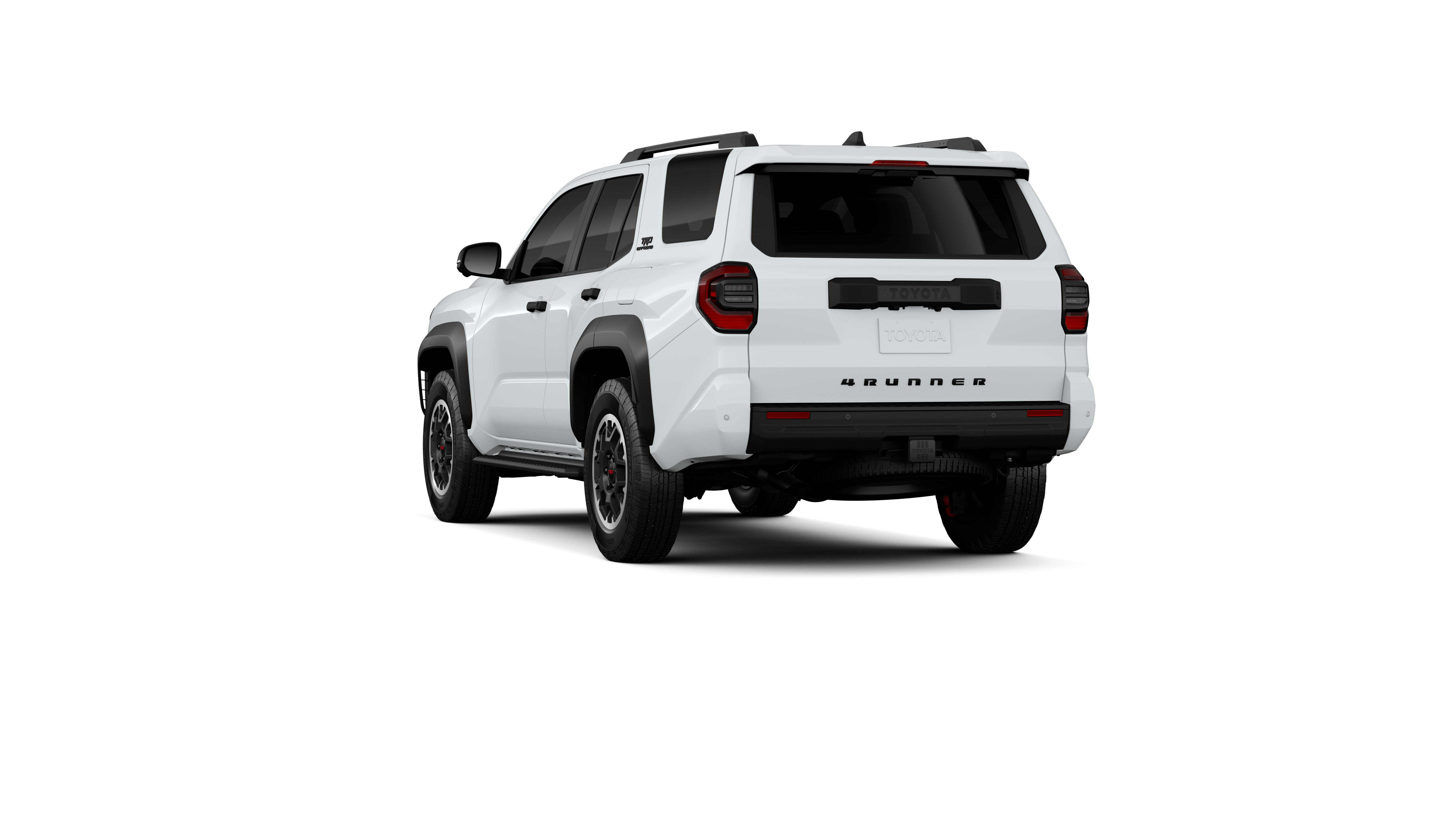 - Black honeycomb-style grille, mirror caps, door handles and overfenders; color-keyed rear spoiler; black "TRD OFF ROAD" and "4RUNNER" badges