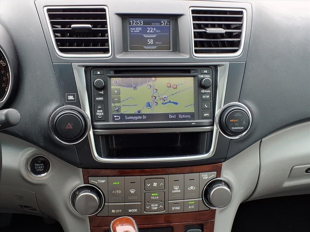 Protect it from unwanted accidents with a cutting edge backup camera system. Bluetooth technology is built into the vehicle, keeping your hands on the steering wheel and your focus on the road. You'll never again be lost in a crowded city or a country region with the navigation system on the vehicle. The leather seats in this 2013 Toyota Highlander are a must for buyers looking for comfort, durability, and style. The Toyota Highlander offers Automatic Climate Control for personalized comfort. Set the temperature exactly where you are most comfortable in this 2013 Toyota Highlander . The fan speed and temperature will automatically adjust to maintain your preferred zone climate. This model has a V6, 3.5L high output engine. Enjoy the convenience of the power liftgate on this mid-size suv. This vehicle embodies class and sophistication with its refined white exterior. The vehicle is front wheel drive. Easily set your speed in the vehicle with a state of the art cruise control system. Increase or decrease velocity with the touch of a button.