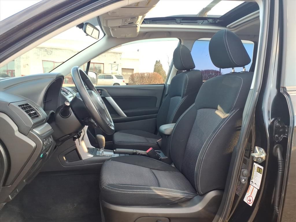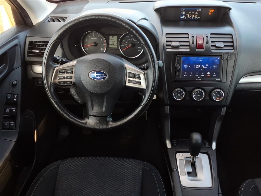 Our dealership has already run the CARFAX report and it is clean. A clean CARFAX is a great asset for resale value in the future. This vehicle features a hands-free Bluetooth phone system. See what's behind you with the back up camera on this mid-size suv. Good News! This certified CARFAX 1-owner vehicle has only had one owner before you. The Subaru Forester has an elegant black exterior finish. This model is equipped with all wheel drive. Set the temperature exactly where you are most comfortable in the Subaru Forester. The fan speed and temperature will automatically adjust to maintain your preferred zone climate. The vehicle has a 4 Cyl, 2.5L high output engine. Easily set your speed in it with a state of the art cruise control system. Increase or decrease velocity with the touch of a button. Enjoy the tried and true gasoline engine in the Subaru Forester.