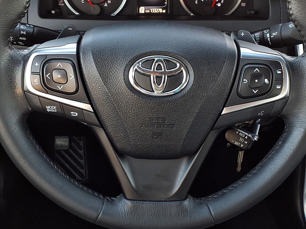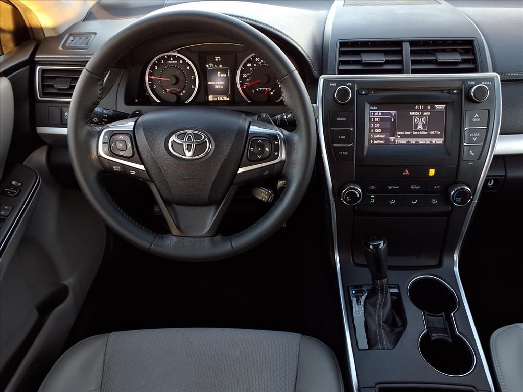 The leather seats in this 2017 Toyota Camry are a must for buyers looking for comfort, durability, and style. This vehicle is a certified CARFAX 1-owner. Protect the vehicle from unwanted accidents with a cutting edge backup camera system. Bluetooth technology is built into this Toyota Camry, keeping your hands on the steering wheel and your focus on the road. This mid-size car has a clean CARFAX vehicle history report. The vehicle has a 4 Cyl, 2.5L high output engine. Front wheel drive on it gives you better traction and better fuel economy. Set the temperature exactly where you are most comfortable in this unit. The fan speed and temperature will automatically adjust to maintain your preferred zone climate. This Toyota Camry shines with an exquisite metallic silver exterior finish. With the adjustable lumbar support in this mid-size car your back will love you. The high efficiency automatic transmission shifts smoothly and allows you to relax while driving.