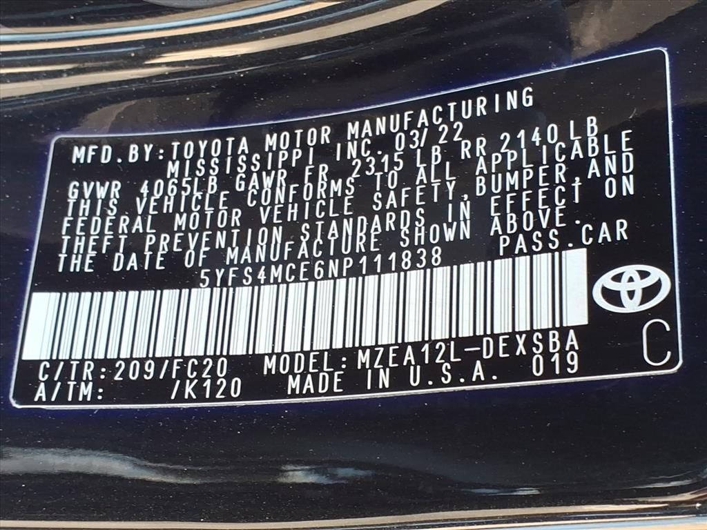 It offers Apple CarPlay for seamless connectivity. The vehicle comes equipped with Android Auto for seamless smartphone integration on the road. This vehicle is a certified CARFAX 1-owner. This 2022 Toyota Corolla is a manufacturer certified pre-owned vehicle. It keeps you comfortable with Auto Climate. The Toyota Corolla has a clean CARFAX vehicle history report. See what's behind you with the back up camera on this Toyota Corolla. Bluetooth technology is built into this Toyota Corolla, keeping your hands on the steering wheel and your focus on the road. It is painted with a sleek and sophisticated black color. The vehicle has a 4 Cyl, 2.0L high output engine. Maintaining a stable interior temperature in this 2022 Toyota Corolla is easy with the climate control system. The vehicle is front wheel drive. It has an automatic transmission. Electronic Stability Control is one of many advanced safety features on this vehicle.