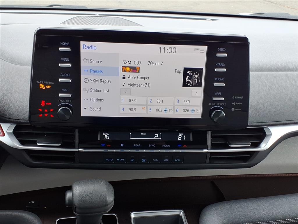 It warns of approaching vehicles with Cross-Traffic Alert. This model offers Android Auto for seamless smartphone integration. This Toyota Sienna has gone through a stringent manufacturer pre-owned certification process, including a meticulous mechanical and reconditioning processes. Take the stress out of car buying with this certified pre-owned. This Toyota Sienna enhances safety with a blind spot monitor, alerting drivers to potential dangers in adjacent lanes. It offers Automatic Climate Control for personalized comfort. Our dealership has already run the CARFAX report and it is clean. A clean CARFAX is a great asset for resale value in the future. Apple CarPlay: Seamless smartphone integration for this mini van - stay connected and entertained on the go! Good News! This certified CARFAX 1-owner vehicle has only had one owner before you. Bluetooth technology is built into the Toyota Sienna, keeping your hands on the steering wheel and your focus on the road.