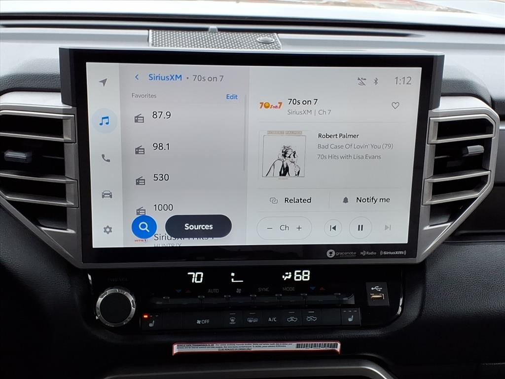 This 2022 Toyota Tundra 's blind spot monitor enhances safety. This vehicle offers Automatic Climate Control for personalized comfort. Protect this vehicle from unwanted accidents with a cutting edge backup camera system. Never get into a cold vehicle again with the remote start feature on this Toyota Tundra. Bluetooth technology is built into this vehicle, keeping your hands on the steering wheel and your focus on the road. This model offers Apple CarPlay for seamless connectivity. The leather seats in it are a must for buyers looking for comfort, durability, and style. Keep your hands warm all winter with a heated steering wheel in this Toyota Tundra . The state of the art park assist system will guide you easily into any spot. This unit offers Android Auto for seamless smartphone integration. Our dealership has already run the CARFAX report and it is clean. A clean CARFAX is a great asset for resale value in the future.