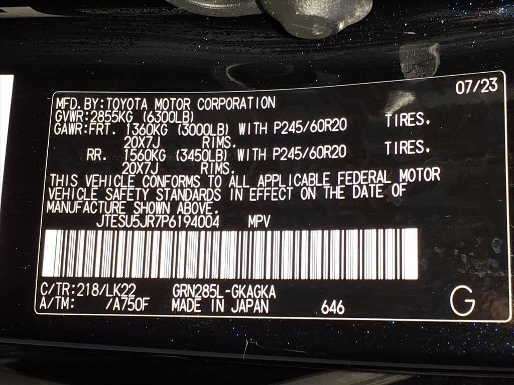 TRD Sport Package: TRD Sport Carpet Floor Mats; 20" Unique Dual 6-Spoke Alloy Wheels; P245/60R20 Mud and Snow Tires; Shift Knob; Black Roof Rails; TRD Sport Badge; SofTex Seat Trim. Technology Package: Panoramic Back Monitor; Heated Outside Rear View Mirrors; Garage Door Opener. Running Boards. Wilderness Package. Paint Protection Film. Console Safe. Sliding Rear Cargo Deck. Dual Power Ports and Quick Charge Cable Package. High Performance Chrome LED Fog Lights. Cargo Cover. Cargo Mat. Black Exhaust Tip. Alloy Wheel Locks. Door Edge Guards. Emergency Assistance Kit. Hitch Ball Mount. Cargo Tote. Coin Holder/ashtray Cup. **Equipment listed is based on original vehicle build and subject to change. Please confirm the accuracy of the included equipment by calling the dealer prior to purchase.**