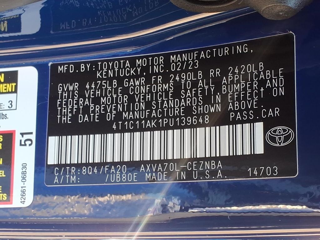 This 2023 Toyota Camry offers Android Auto for seamless smartphone integration. This 2023 Toyota Camry has gone through a stringent manufacturer pre-owned certification process, including a meticulous mechanical and reconditioning processes. Take the stress out of car buying with this certified pre-owned. The vehicle has a clean CARFAX vehicle history report. This vehicle is a certified CARFAX 1-owner. This Toyota Camry offers Automatic Climate Control for personalized comfort. See what's behind you with the back up camera on this 2023 Toyota Camry . This mid-size car offers Apple CarPlay for seamless connectivity. The vehicle features a hands-free Bluetooth phone system. Set the temperature exactly where you are most comfortable in this mid-size car. The fan speed and temperature will automatically adjust to maintain your preferred zone climate. This vehicle is front wheel drive. The vehicle has a 4 Cyl, 2.5L high output engine. It shines with an exquisite blue finish.