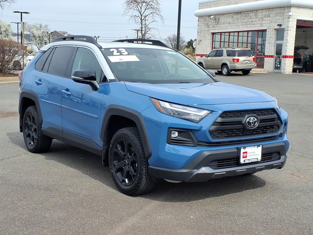 The leather seats in this Toyota RAV4 are a must for buyers looking for comfort, durability, and style. An off-road package is installed on this vehicle so you are ready for your four-wheeling best. This 2023 Toyota RAV4 offers Apple CarPlay for seamless connectivity. Keep your hands warm all winter with a heated steering wheel in the Toyota RAV4 . The vehicle warns of approaching vehicles with Cross-Traffic Alert. Our dealership has already run the CARFAX report and it is clean. A clean CARFAX is a great asset for resale value in the future. This 2023 Toyota RAV4 is a manufacturer certified pre-owned vehicle. It offers Automatic Climate Control for personalized comfort. Protect this vehicle from unwanted accidents with a cutting edge backup camera system. Bluetooth technology is built into this small suv, keeping your hands on the steering wheel and your focus on the road. This Toyota RAV4 comes equipped with Android Auto for seamless smartphone integration on the road.
