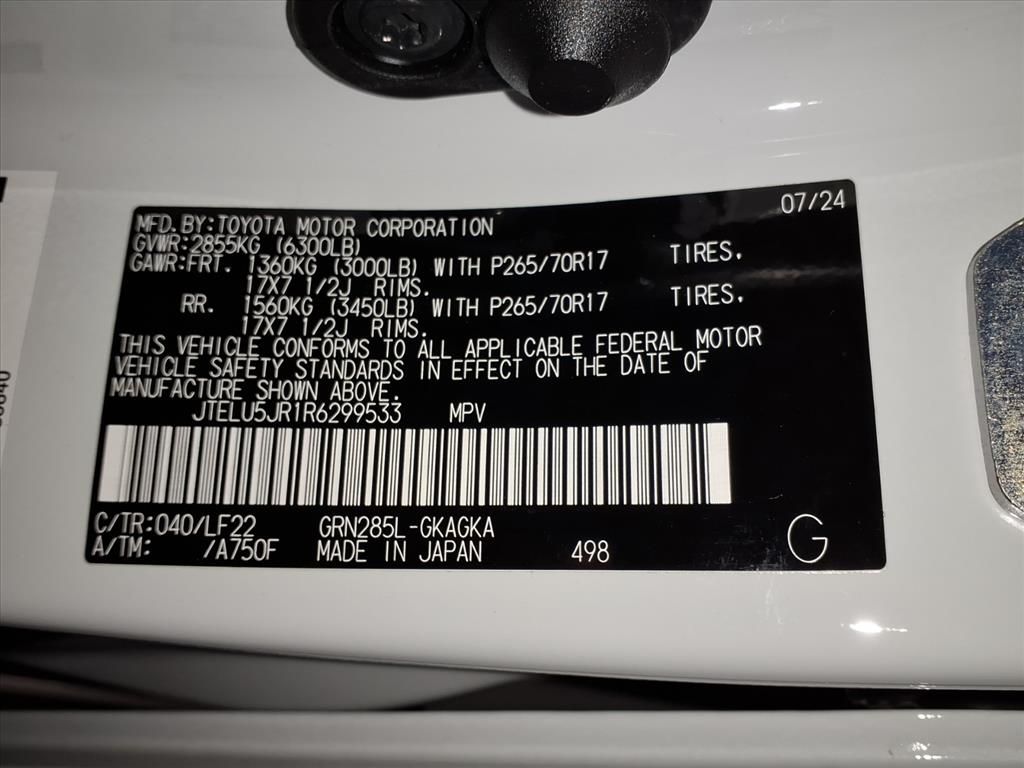TRD PRO Package: TRD Shift Knob; TRD Pro Badging; Dual Zone Auto Climate Control; Roof Rack; Heated Outside Rear View Mirrors; Garage Door Opener; TRD Pro All Weather Floor Liner; Wheel Locks; Skid Plate; Multi-Terrain Back Monitor; SofTex Seat Trim; Black Lug Nuts; TRD Pro Exhaust; Moonroof with Tilt Up and Slide; Fog Lights; Fox Shocks. Predator Tube Step. TRD PRO Carpet Floor Mats. Cargo Cover. **Equipment listed is based on original vehicle build and subject to change. Please confirm the accuracy of the included equipment by calling the dealer prior to purchase.**