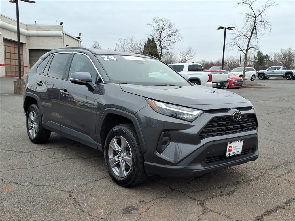This vehicle is a certified CARFAX 1-owner. It enhances safety with a blind spot monitor, alerting drivers to potential dangers in adjacent lanes. Apple CarPlay: Seamless smartphone integration for this model - stay connected and entertained on the go! This unit has a clean CARFAX vehicle history report. This 2024 Toyota RAV4 features a hands-free Bluetooth phone system. The Toyota RAV4 comes equipped with Android Auto for seamless smartphone integration on the road. The vehicle offers Automatic Climate Control for personalized comfort. This vehicle is a manufacturer certified pre-owned vehicle. Protect this 2024 Toyota RAV4 from unwanted accidents with a cutting edge backup camera system. This vehicle warns of approaching vehicles with Cross-Traffic Alert. Maintaining a stable interior temperature in this 2024 Toyota RAV4 is easy with the climate control system. The Toyota RAV4 has a 4 Cyl, 2.5L high output engine. This small suv emanates grace with its stylish gray exterior.