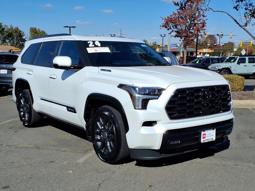 2024 Toyota Sequoia Platinum — a meticulously maintained Certified Pre-Owned SUV with just 15,094 miles — now available in Manassas, VA. This statement-making 4WD Toyota Sequoia pairs a powerful yet efficient V6 3.5L (3445 cc) gasoline engine with premium features and modern safety technology, delivering exceptional capability for families and adventurers alike. As a certified pre-owned vehicle, it arrives with rigorous inspection and backed assurances for added peace of mind. Step inside to find a refined interior highlighted by a heated steering wheel, premium seating, and advanced connectivity including hands-free Bluetooth for seamless smartphone integration. Safety and driver assistance are enhanced by a backup camera and blind spot monitor, making parking and lane changes safer and more confident on every drive. A CARFAX Clean Report confirms the vehicle's strong history and care. This Toyota Sequoia Platinum balances bold design, towing readiness, and everyday comfort while offering the best price in the market for comparable certified models in the region. Low mileage and certification make it an exceptional value — a near-new ownership experience without the new-vehicle premium. Located in Manassas, VA, this Toyota Sequoia is ready for immediate test drives and delivery. Contact us to schedule an appointment and secure this low-mileage, best-price Certified Pre-Owned Toyota Sequoia today.