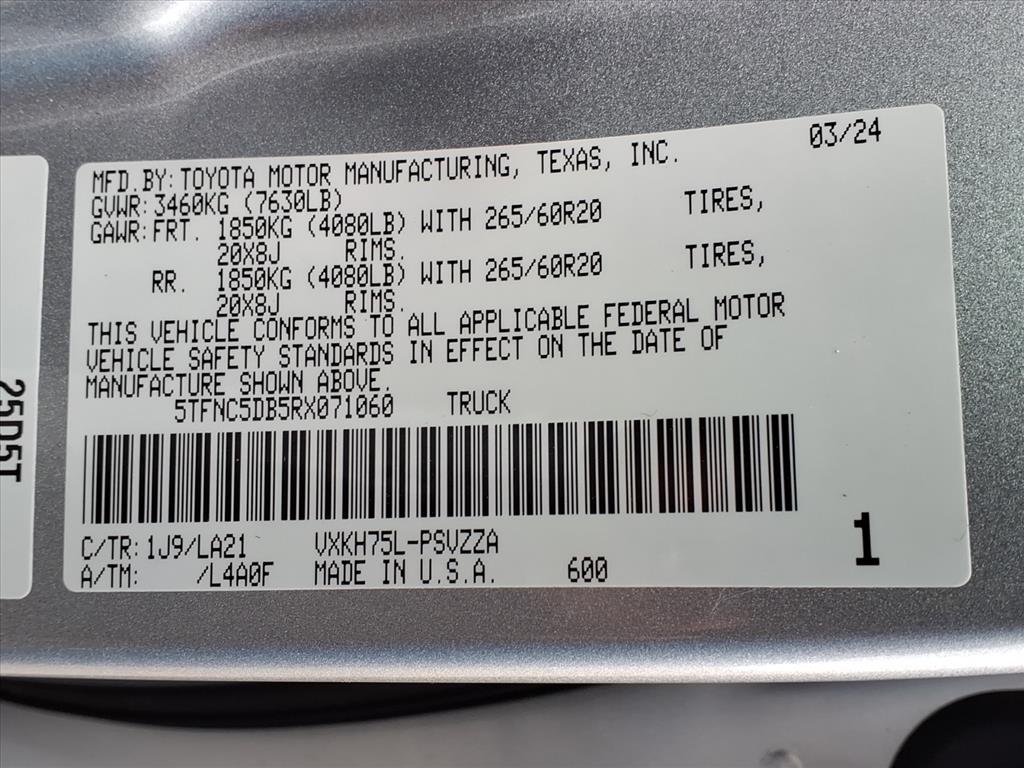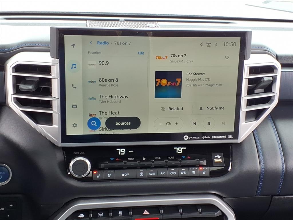 The vehicle offers Apple CarPlay for seamless connectivity. Start this model from inside with remote start. The installed navigation system will keep you on the right path. The Toyota Tundra Hybrid comes equipped with Android Auto for seamless smartphone integration on the road. The leather seats in this 2024 Toyota Tundra Hybrid are a must for buyers looking for comfort, durability, and style. See what's behind you with the back up camera on the vehicle. Good News! This certified CARFAX 1-owner vehicle has only had one owner before you. Bluetooth technology is built into it, keeping your hands on the steering wheel and your focus on the road. The Toyota Tundra Hybrid's Cross-Traffic Alert: Safeguarding you from unexpected traffic when reversing. Keep your hands warm all winter with a heated steering wheel in this unit . Our dealership has already run the CARFAX report and it is clean. A clean CARFAX is a great asset for resale value in the future.
