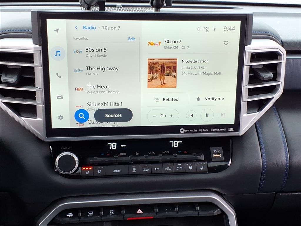 Never get into a cold vehicle again with the remote start feature on the vehicle. The leather seats in this Toyota Tundra are a must for buyers looking for comfort, durability, and style. Protect this Toyota Tundra from unwanted accidents with a cutting edge backup camera system. It features a hands-free Bluetooth phone system. The vehicle offers Apple CarPlay for seamless connectivity. You'll never again be lost in a crowded city or a country region with the navigation system on it. This 1/2 ton pickup comes equipped with Android Auto for seamless smartphone integration on the road. The vehicle's blind spot monitor enhances safety. This vehicle warns of approaching vehicles with Cross-Traffic Alert. Good News! This certified CARFAX 1-owner vehicle has only had one owner before you. Keep your hands warm all winter with a heated steering wheel in this 1/2 ton pickup . This 2024 Toyota Tundra projects refinement with a racy metallic gray exterior.