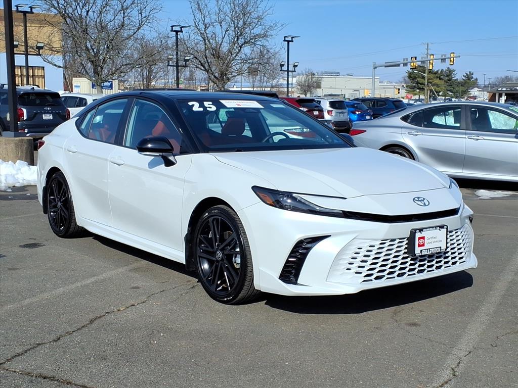 Experience exceptional value with this 2025 Toyota Camry Hybrid XSE, now available in Manassas, VA. This certified pre-owned sedan pairs a smooth 2.5L 4-cylinder Full Hybrid Electric (FHEV) powertrain with efficient FWD, delivering impressive fuel economy and confident performance. With only 10,609 miles, this Toyota Camry Hybrid offers low mileage and the reliability Toyota drivers expect. Inside, the XSE trim features premium amenities and advanced technology, including factory navigation, Apple CarPlay, and Android Auto for seamless smartphone integration. Safety and peace of mind are enhanced by Cross-Traffic Alert and a CARFAX Clean Report, confirming a well-maintained history. The sporty XSE styling, refined interior, and quiet hybrid operation make every drive enjoyable, whether commuting or heading out of town. As a certified pre-owned vehicle, this Toyota Camry Hybrid includes comprehensive factory-backed inspections and coverage, providing added assurance for your purchase. Priced competitively, this model offers the best price in the area for its condition and features—an outstanding opportunity for savvy buyers seeking hybrid efficiency and modern tech without compromise. Schedule a test drive in Manassas, VA, and experience the blend of performance, comfort, and advanced safety features firsthand. Contact us today to learn more about financing options and to secure this low-mileage, certified 2025 Toyota Camry Hybrid XSE before it's gone.