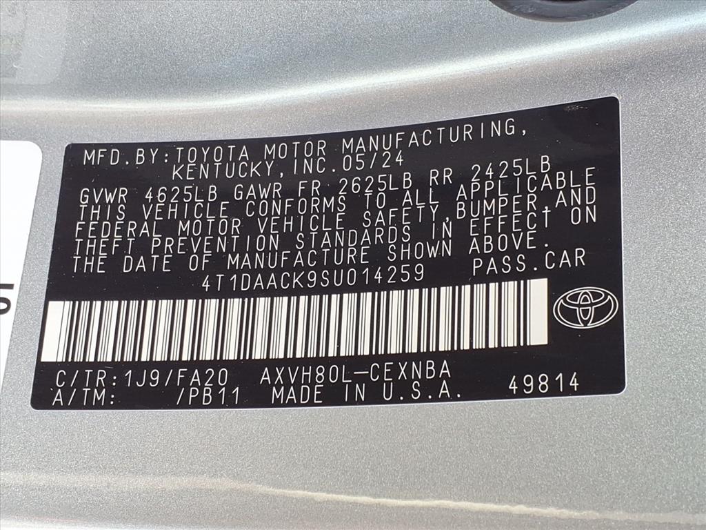 This model features a hands-free Bluetooth phone system. This model is a manufacturer certified pre-owned vehicle. It's blind spot monitor enhances safety. This unit's Cross-Traffic Alert: Safeguarding you from unexpected traffic when reversing. This unit offers Apple CarPlay for seamless connectivity. This model comes equipped with Android Auto for seamless smartphone integration on the road. This unit keeps you comfortable with Auto Climate. See what's behind you with the back up camera on this vehicle. This vehicle has a 4 Cyl, 2.5L high output engine. This mid-size car is front wheel drive. This unit gleams with an elegant silver clear coated finish. Set the temperature exactly where you are most comfortable in this vehicle. The fan speed and temperature will automatically adjust to maintain your preferred zone climate. This vehicle has an automatic transmission. The Electronic Stability Control will keep you on your intended path. Easily set your speed in this 2025 Toyota Camry Hybrid with a state of the art cruise control system. Increase or decrease velocity with the touch of a button.